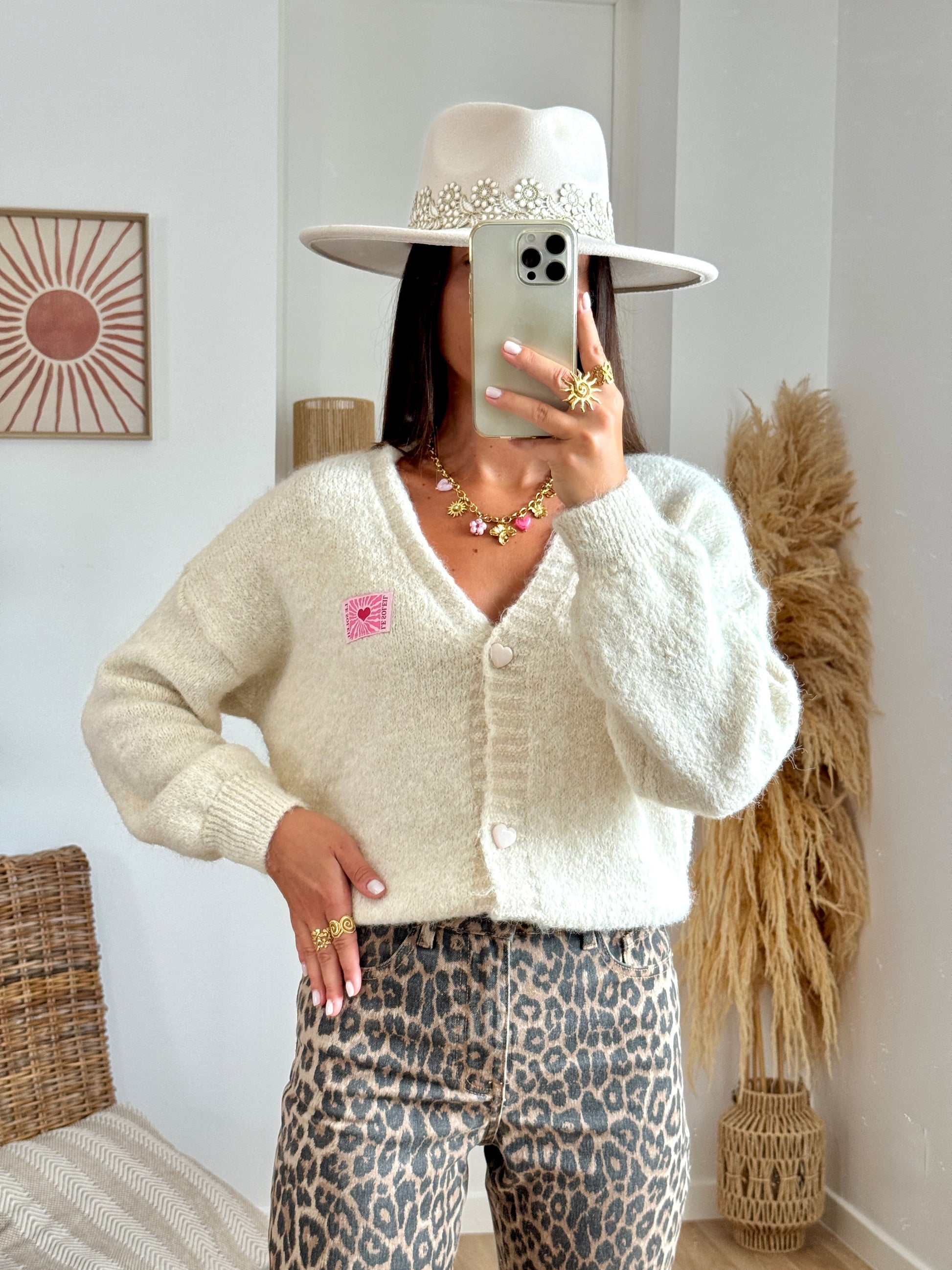 Un gilet féminin & intemporel, twisté par de jolis boutons en forme de cœur qui font toute la différence.