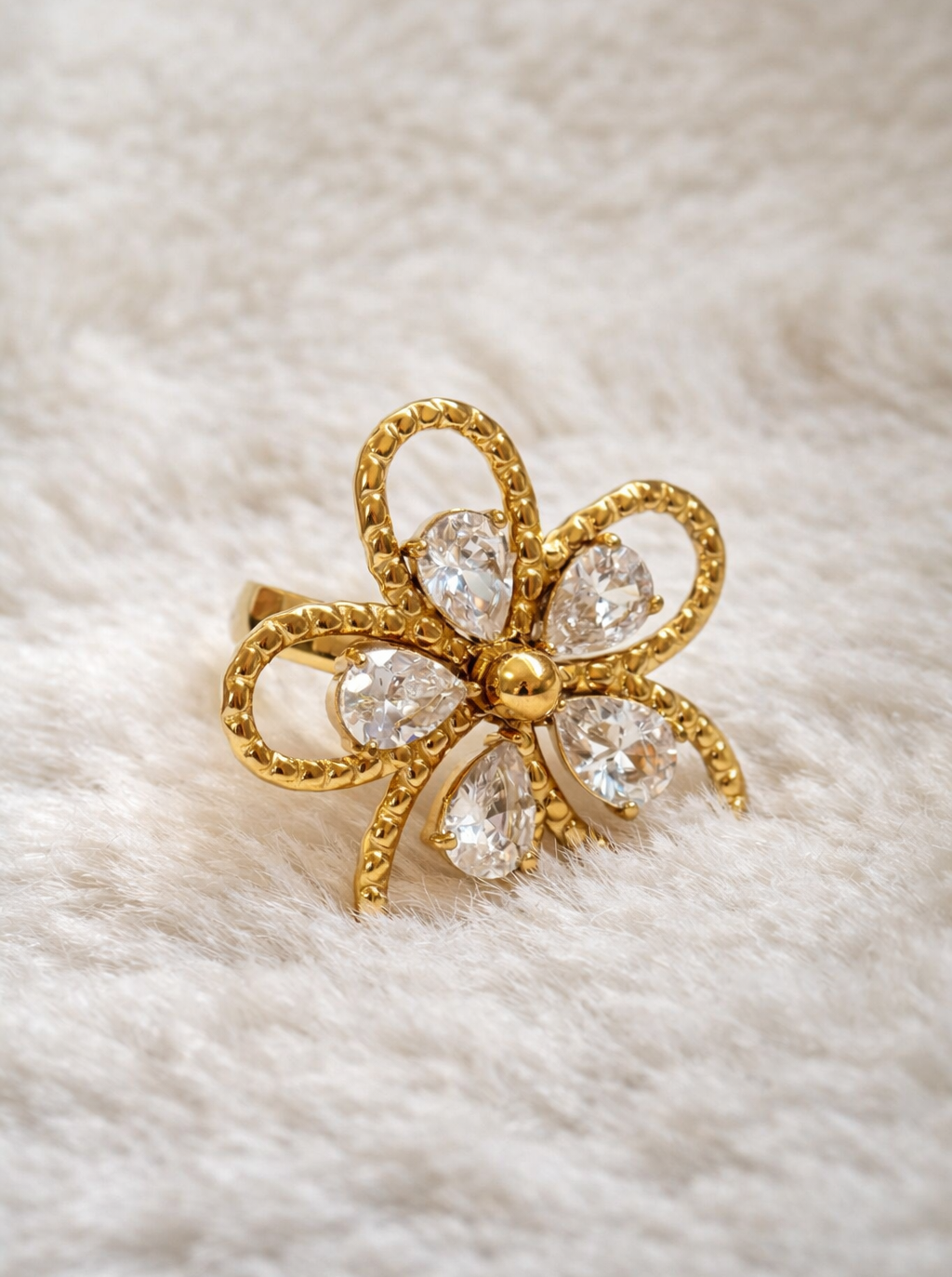 Sublimez vos mains avec cette magnifique bague en forme de fleur. Parfaite pour les fêtes.