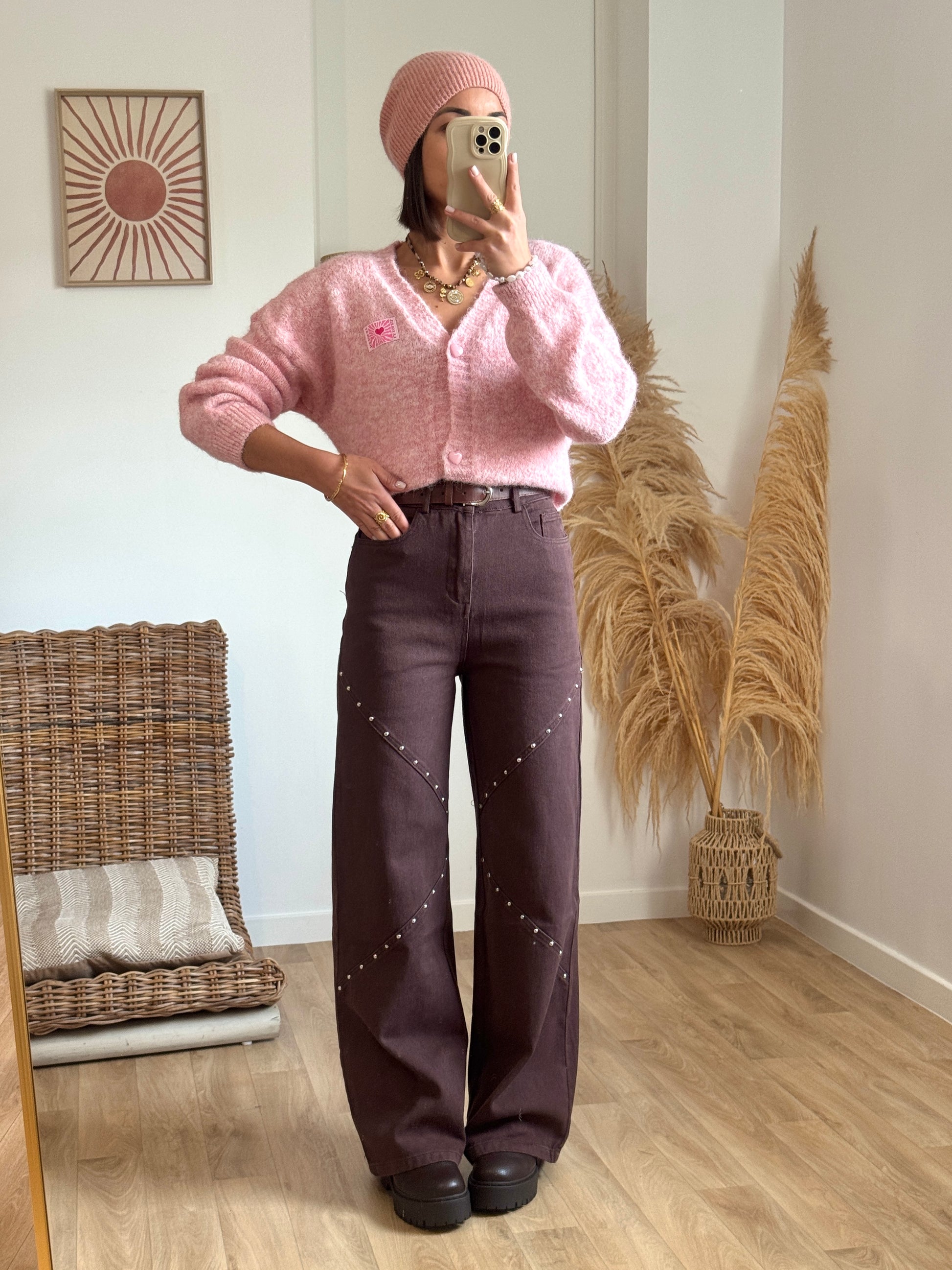 Jean marron à clous – le denim tendance au caractère affirmé