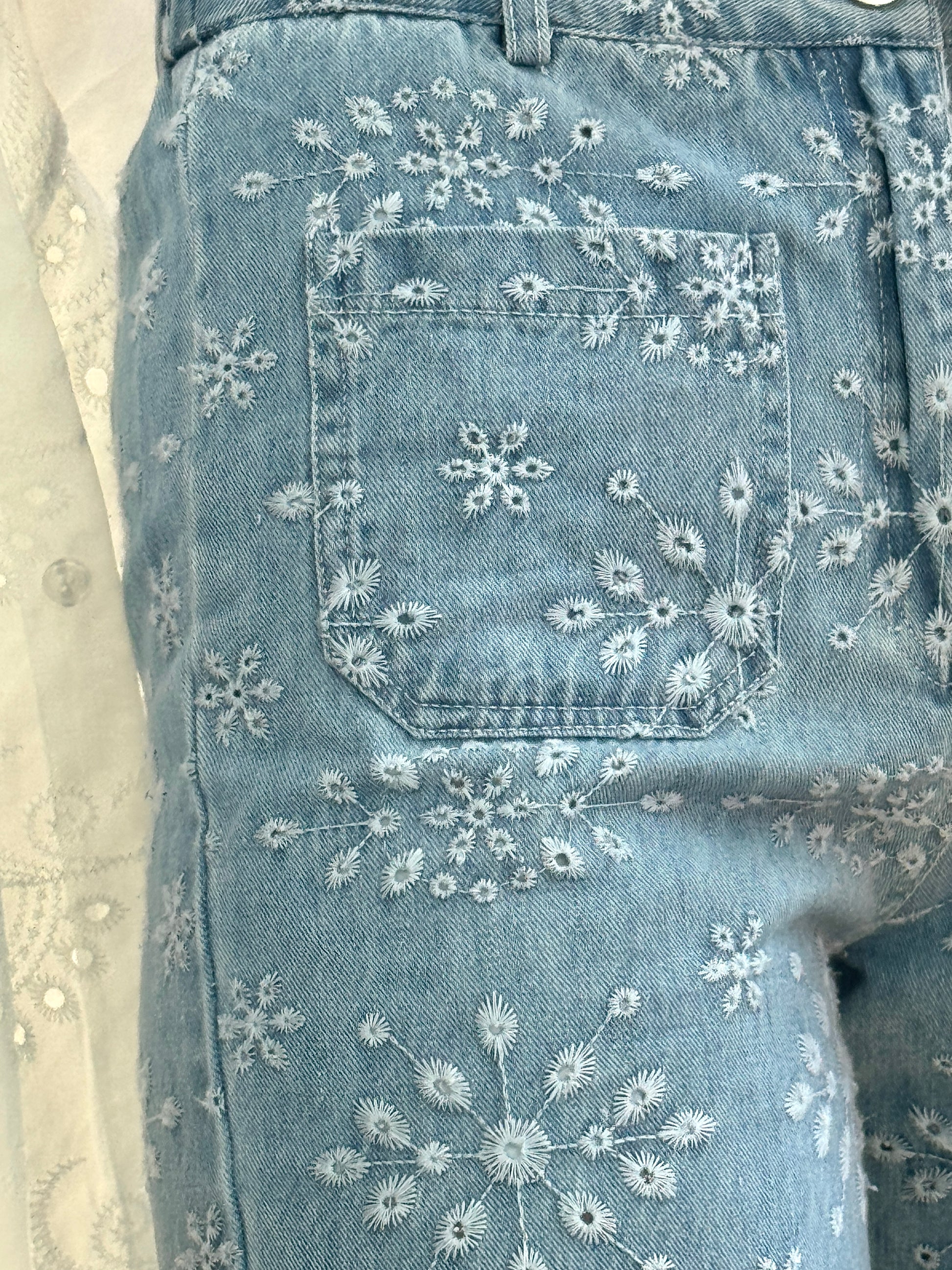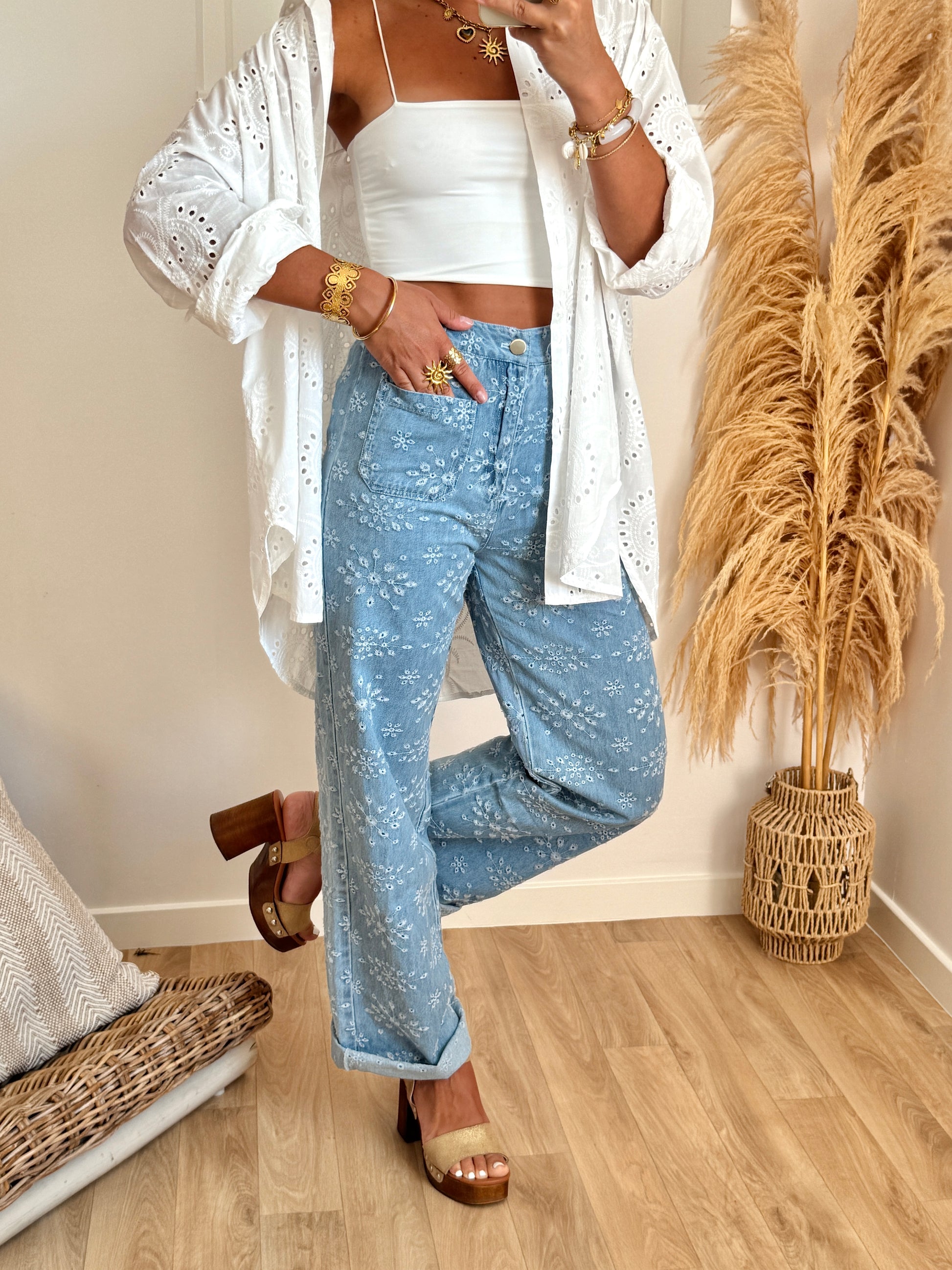 Ce jean, c’est LE crush de la saison. Il mixe à la perfection le caractère brut du denim avec la délicatesse de la broderie anglaise. Un contraste canon qui le rend unique, ultra stylé, et qu’on a envie de porter non-stop !