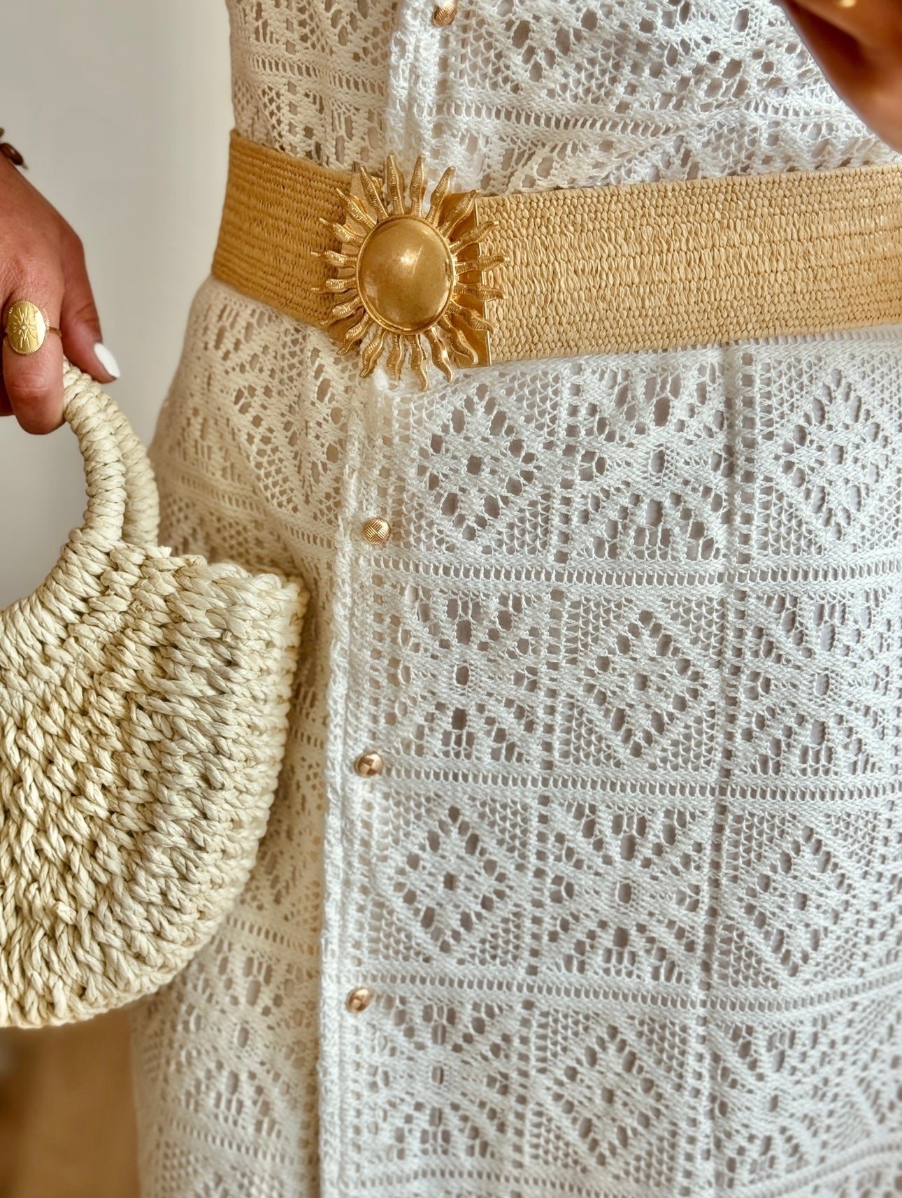 💡 Sur la photo, la robe est portée avec la ceinture SOLEIL, non incluse. La robe est vendue sans ceinture.