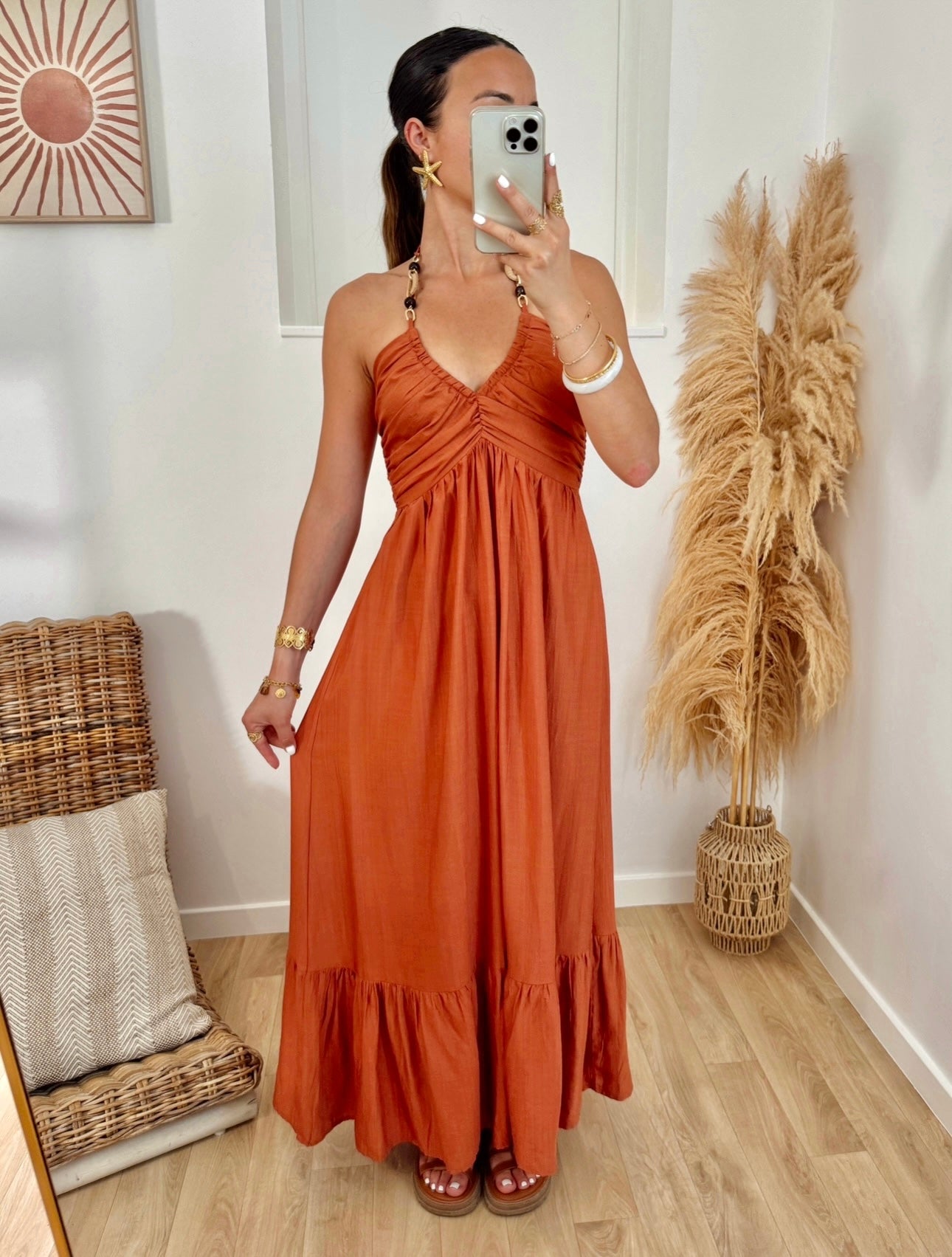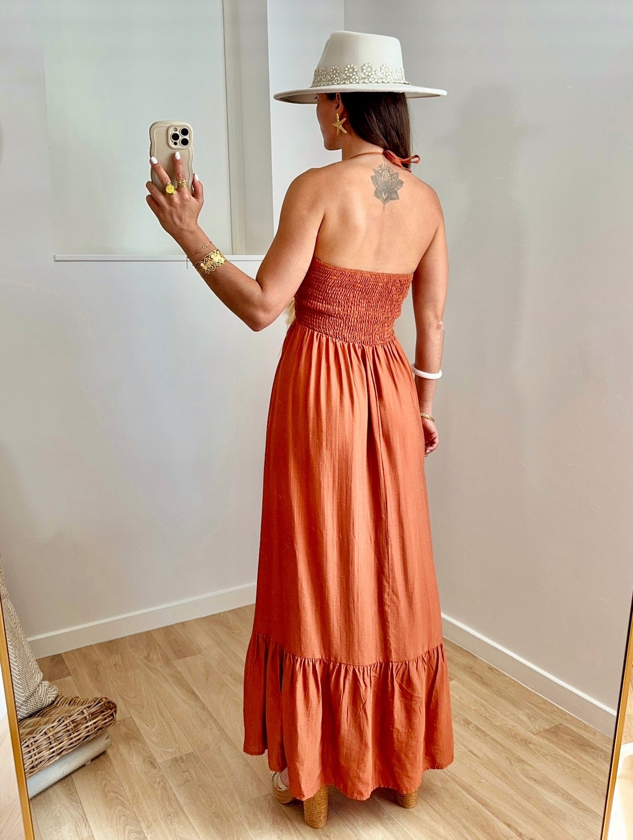 MAEVA, cette robe longue fluide au tombé délicat est juste parfaite pour vos soirées d'été ou vos occasions spéciales.